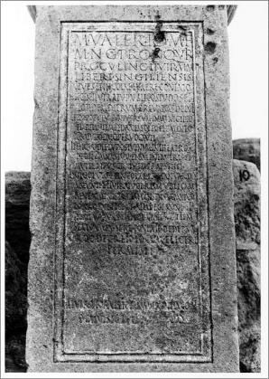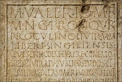 Estatua del Iivir M. Valerius M. f. M. n. G. pron. Quir. Proculinus